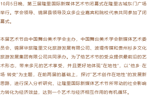 新媒无界艺无边——第三界隆里国际新媒体艺术节圆满落幕