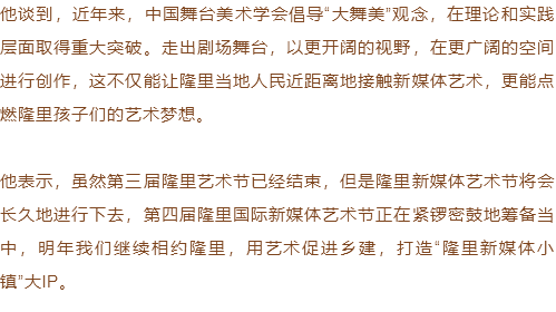 虽然第三届隆里艺术节已经结束,但是隆里新媒体艺术节将会长久地进行下去,第四届隆里国际新媒体艺术节正在紧锣密鼓地筹备当中,明年我们继续相约隆里,用艺术促进乡建,打造“隆里新媒体小镇”大IP。