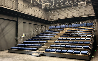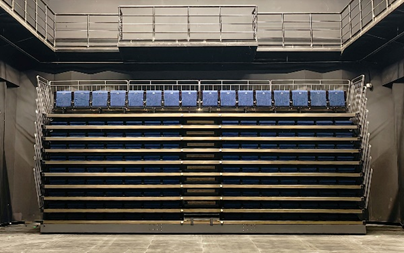黑匣子剧场作为艺术院校开展实验性戏剧、小型演出及教学实践的核心场所,其设备配置直接影响创作与教学效果。针对剧场 “灵活可变” 的功能定位,校方在黑匣子剧场里定制安装可伸缩活动看台。该看台采用轻量化合金材质,具备快速展开与收纳功能,展开后可容纳 142 名观众,满足小型演出、会议等场景需求;收纳后则释放场馆中央空间,不影响日常教学与排练使用。同时,看台设计符合人体工程学,配备防滑踏板与安全护栏,兼顾舒适性与安全性。